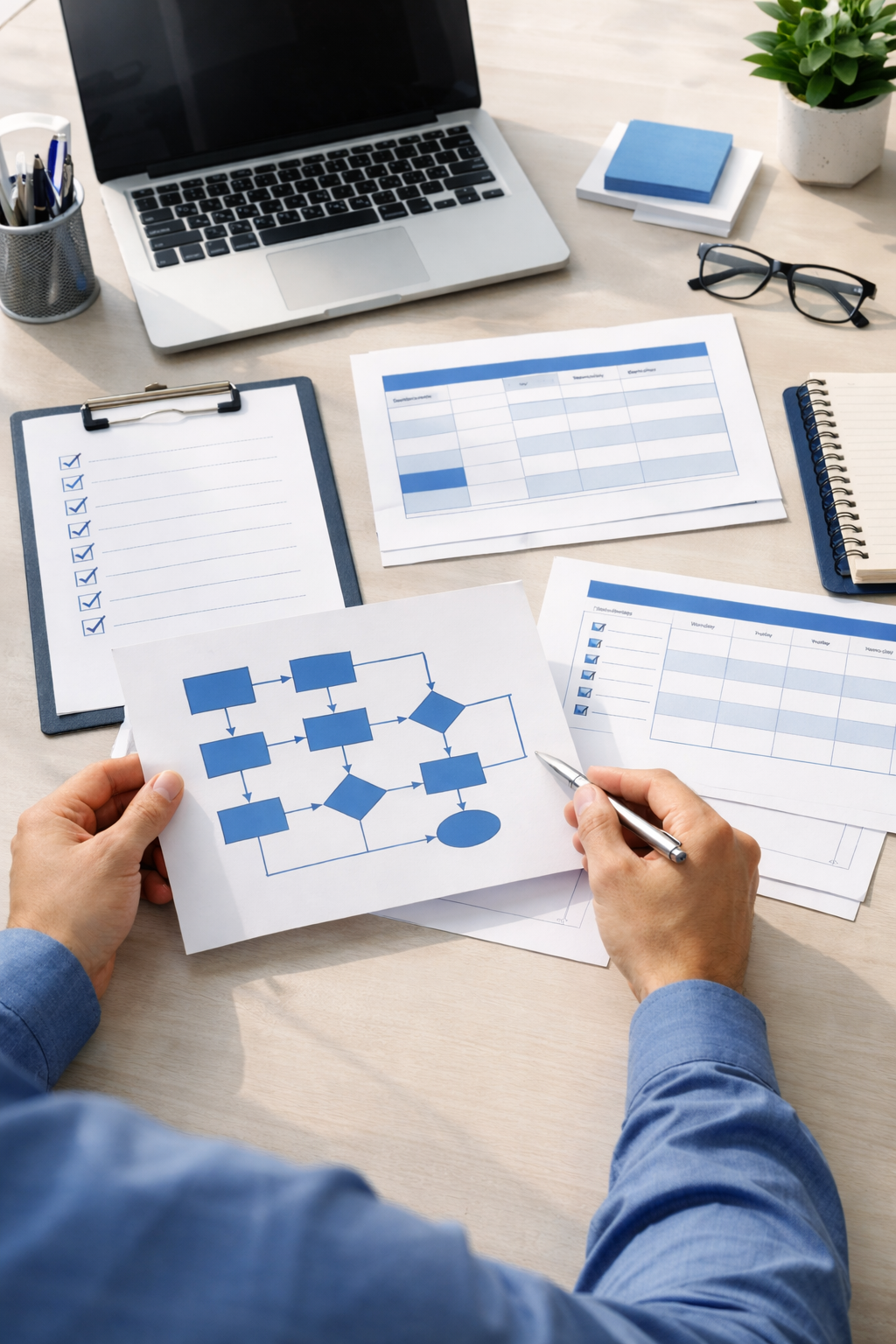 Te ayudamos a organizar tareas, responsabilidades y procesos para que tu negocio sea más eficiente y puedas centrarte en lo que realmente genera valor. Reducimos la improvisación y mejoramos la forma en que trabajas día a día.
